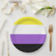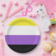 Non-binary people may identify as having two or more genders; having no gender; moving between genders or having a fluctuating gender identity; or being third gender or other-gendered, a category that includes those who do not place a name to their gender. Each stripe colour represents different types of non-binary identities: Yellow for people who identify outside of the gender binary, white for nonbinary people with multiple genders, purple for those with a mixture of both male and female genders, and black for agender individuals.