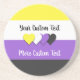 Sandstone coaster with the non-binary pride flag with little hearts in the centre of the design. Black, purple, white, and yellow flag of the enby pride movement; with an editable text field for your name or message