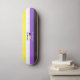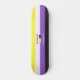 Skateboard with the non-binary pride flag with little hearts in the center of the design. Black, purple, white, and yellow flag of the enby pride movement; with an editable text field for your name or message
