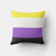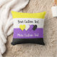 Throw pillow with the non-binary pride flag with little hearts in the centre of the design. Black, purple, white, and yellow flag of the enby pride movement; with an editable text field for your name or message