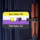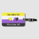 Luggage tag with the non-binary pride flag with little hearts in the centre of the design. Black, purple, white, and yellow flag of the enby pride movement; with an editable text field for your name or message
