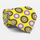 Neck-tie with a seamless modern geometric flower pattern in the colours of the non-binary pride flag; a yellow, white, purple, and black enby pride design on a yellow background