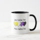 Combo mug with hearts in the colors of the non-binary pride flag; a yellow, white, purple, and black enby design; with customizable text template for your name or message