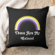 Polyester Throw Pillow with the rainbow in the colours of the non-binary pride flag; LGBTQ pride design, "These Are My Colours" template text, by pinkbrickroad
