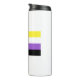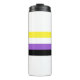 The non-binary flag was created in 2014 by activist Kye Rowan. Each stripe colour represents different types of non-binary identities: Yellow for people who identify outside of the gender binary, white for nonbinary people with multiple genders, purple for those with a mixture of both male and female genders, and black for agender individuals.