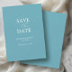 Announce your big day in style with these elegant save the dates! Designed for couples looking for a non-photo, modern save the date wedding invitation, this card features a bold turquoise blue background with a sophisticated mix of classic and script typography in crisp white.