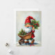 Spread festive cheer with this contemporary holiday design featuring a cheerful Christmas gnome carrying winter branches in a wooden wheelbarrow. His bright red hat, cosy coat, and snowy boots bring warmth and charm to the scene, while the accents of winter greenery add a touch of seasonal beauty.