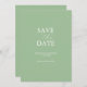 Announce your engagement with this modern non-photo wedding save the date invitation in sage green. It features a mix of classic and script typography in white. Use the template fields to personalise with your name and wedding date. Even customise the colours to suit your desired wedding theme. Choose from a variety of quality card stocks. A minimal yet stylish design for weddings and engagement announcements. To see the matching wedding stationery suite visit www.zazzle.com/dotellabelle