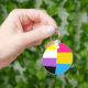 Show off your personality with this nonbinary flag and pansexual flag combined in one keychain to show off your gender pronouns and sexuality. A cool non binary panromantic gift for a queer person that goes by they/them.