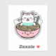 Slurp up the cuteness with this adorable noodle-loving kitty! This kawaii sticker features a happy cat lounging in a bowl of ramen, complete with chopsticks, swirls of noodles, and playful sparkles. Perfect for decorating laptops, water bottles, and planners — a purr-fect pick for cat lovers, food fans, and kawaii enthusiasts.
