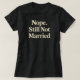 Make a statement with the "Nope Still Not Married" T-shirt! Wear it confidently and let everyone know you're living life on your terms, ring or not! Order today!