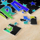 This vibrant, lively, birthday-themed jigsaw puzzle design features the message "HAPPY BIRTHDAY, NORA" with the characters having a colourful rainbow spectrum inspired gradient pattern, in addition to a fun stars background pattern. An exciting puzzle like this might be used to send birthday wishes to somebody named Nora. [~Z0000468]