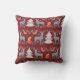 Nordic Burgundy Red Reindeer Christmas Tree Floral Cushion