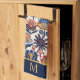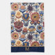 Here's an attractive kitchen towel with a colourful boho style Nordic flower design in tones of blue, cinnamon brown, and gold. At the bottom is a matching blue border with your monogram in gold. Bright and colourful! Be sure to see the matching home decor products in our store.