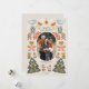 This holiday card features a Folksy Chic, Scandinavian/Nordic-inspired aesthetic, utilizing a soft, neutral background and earthy color palette (terracotta, olive green, mustard yellow, and off-white). The card features an image in an oval frame in the center. The design feels both cozy and contemporary. The vibrant, simplified illustrations give it a handcrafted, warm feel, making it an excellent choice for a family card that celebrates the holidays with a unique, artistic touch.