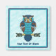 A cute owl in brown and blue, done in Nordic folk art style, superimposed on a snowy background image. Customise by adding your own text. You may remove the outer border, change the font as well as the text colour.