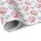 An intricate grouping of flowers, birds, reindeer, snowflakes, trees and other plants... in classic colours of red and blue grey, inspired by traditional Nordic Folk Art, adorns this Scandinavian Themed Christmas wrapping paper.