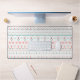 Large desk mat features light colours and rows of Nordic / Scandinavian patterns, creating a subtle design for winter / holiday home decor