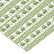 Festive winter table runner features Nordic / Scandinavian knit pattern in white and green featuring reindeer and snowflakes.