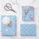 This set of Christmas gift wrap sheets features a fun Nordic Santa, animals, and snowflake theme. One paper has Santa Claus with his nordic friends, a reindeer and a polar bear. One paper has Santa alone amid snowflakes. The third paper has a pattern of matching nordic style snowflakes. All of the patterns are placed on a bright ice blue background. Fun for kids of all ages!