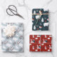 Holiday Nordic Scandinavian Contemporary woodland bear pattern Christmas Wrapping Paper sheets from Ricaso - in a blue and red design. 3 different styles of paper ideal for the holiday gift wrapping.