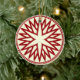 Striking custom-made ornament combines the essence of Art Deco, Nordic Patterns and a maritime feel with these clean and bold design. Dark brick red snowflake (or chrysanthemum) against a lemony ivory background. 5 custom text fields on back to make this truly your own!
