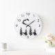 Pine trees and two moose in black. With an eagle flying above the forest. The black silhouettes are inspired by the nordic and Scandinavian woods. White background, transparent background so you may add a colour to match your home interior. Black clock numbers