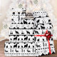 A neutral black and white holiday wrapping paper featuring a Nordic sweater pattern of winter animals.