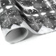 An elegant neutral holiday wrapping paper featuring a Nordic sweater winter animal pattern in grey and black buffalo plaid, with a white winter animals.