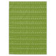 Festive winter themed design features Nordic / Scandinavian knit pattern of Christmas trees, and stars or snowflakes on green background.