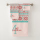 Nordic Winter Sweater Faux Knit Pattern Monogram Design. With Fun Knit Snowflakes, Hearts, and Geometric Lines, In Aqua, Teal, Red, and Peach. Pretty and Unique for Holidays, Christmas, or Winter! With Monogrammed First Name and Last name Initial Letter. Makes a great gift for any girl, family members, for her, little girls to Teens, Wife, Friends, and more. Trendy Scandinavian Style Bath Towel Set!