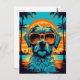 Colourful design of a Norfolk Terrier wearing sunglasses at a tropical beach.