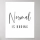 This design is composed of the phrase "Normal is Boring" which is a typography poster wall art that features a clean and modern design that is perfect for brightening up and adding some personality to any space. This lovely print can be personalised further by adding your own custom text, as well as changing the colours. This design has a modern feel and would look great in a modern apartment or loft space.