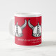 Drink your beverage from this jumbo sized mug. Would also be great for a big serving of soup or chilli! Red background, three hand drawn Viking helmets and a Norse Mythology quote cover the outside of this mug. Would be the perfect gift for the Viking lover in your life.