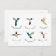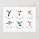 Cute postcard featuring Ruby-throated, Rufous, Black-chinned, Allen's, Broad-billed and Anna's Hummingbirds.