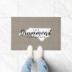 Modern farmhouse personalised doormat with your family name inside your state map. Faux burlap canvas texture background. Click Customise It to add your own text and images and create a unique one of a kind design!
