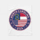Badge of North Carolina with flag of North Carolina and flag of USA colours, rounded shape.