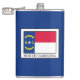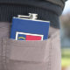 The flask itself is fine. It’s a cheap flask, obviously bought in bulk, however am prepared to overlook that. Given that it is a personalized item, I would have liked to have seen gift boxing instead of the generic packaging. Terrible printing, and/or quality. It’s a cheap, tacky vinyl. It is not cut straight and is also applied in a way that it is overhanging the bottom, causing the glue to catch on items and it will eventually roll and tear, damaging the wrap.