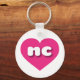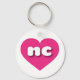 This keychain features a vibrant hot pink heart containing the bold, white, rounded lower case letters nc, a playful abbreviation for the state of North Carolina, the tar heel state.