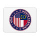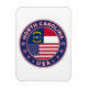 Badge of North Carolina with flag of North Carolina and flag of USA colors, rounded shape.