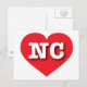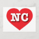 This postcard features a vibrant red heart containing the bold, white, upper case letters NC, the official abbreviation for North Carolina, the tar heel state.