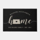 Show some home state pride with this custom doormat featuring "home" in tan calligraphy script lettering with a silhouette map of the state of North Dakota standing in for the letter "O." A heart illustration inside the state map completes the design; you can change the position of the heart to your home city by opening the design tool and dragging the heart shape to your favourite spot. Personalise with your home city, family name and year established to create a perfect finishing touch for your front door, or a memorable housewarming gift.