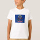 100% cotton so perfect for summer, It is a nicely designed t-shirt, the fabric is soft and the seams finished well, the body of the t shirt has no side seams. I bought a medium size for my two grandsons, aged 9 and 8 it will be slightly big on them but I would rather that than too small