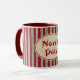 Old fashioned holiday stripes decorate this North Pole Christmas mug. The design is from original art.