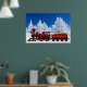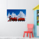 classic north pole express red christmas train loaded with presents and a santa reindeer poster
