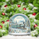 A magic Christmas train to North Pole in the winter wonderland is just the right theme for a Christmas Snow Globe. The design features this whimsical train to meet Santa. On board, you will be served hot chocolates, cookies and cake. The artwork has blue, green and soft gold palette for adornment. The test "North Pole" can be customised.