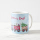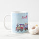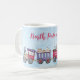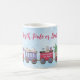 One line of customisable text highlights this "North Pole or Bust" toy train Christmas holiday coffee mug.