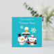 This cute kid's holiday party invitation from Mr. Penguin and Mr. Snowman comes straight from the North Pole! Each are dressed in winter clothing, and a few white snowflakes drift down around them. The images are placed on a bright sky blue background. The front has two custom text fields, with plenty of room on the back for all your information. The cartoon image of the penguin is repeated on the back. Fun for all ages! *Clip art used in this design is copyrighted by Encore Software, Inc., which permits use to its licensors. All rights reserved.
