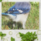 A blue jay in my back yard searching for one of the peanuts I toss out there.