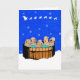 A group of soft coated wheaten terriers are enjoying themselves in the hot tub. Snowflakes are coming down and overhead is Santa & his sleigh, pulled by a fine group of wheaten terriers! Original wheaten terrier artwork "Northern California Christmas" © Melanie Light. Please note: We've purposely left the inside of this card blank so that you can supply your own message. You can pick your own font, colour and message.